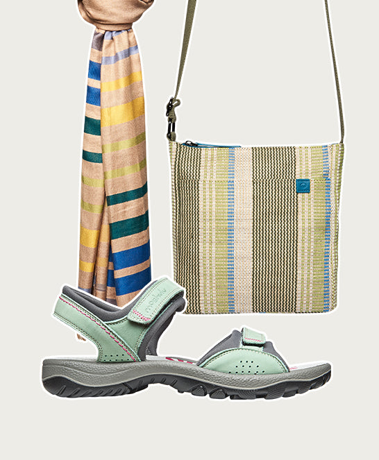 • Nubuck and textile sandals in a practical, walking sandal design to keep heels happy on summer strolls.