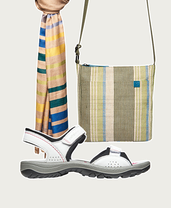 • Nubuck and textile sandals in a practical, walking sandal design to keep heels happy on summer strolls.