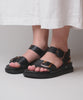 Black Women's tortoiseshell buckle two strap leather sandals