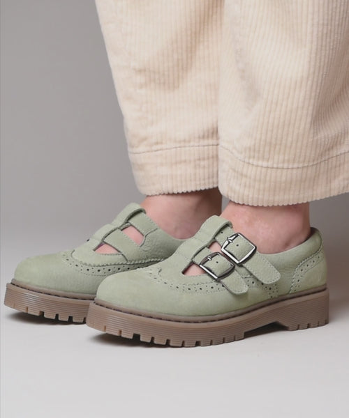 Green Calthia Mary Jane brogue shoes