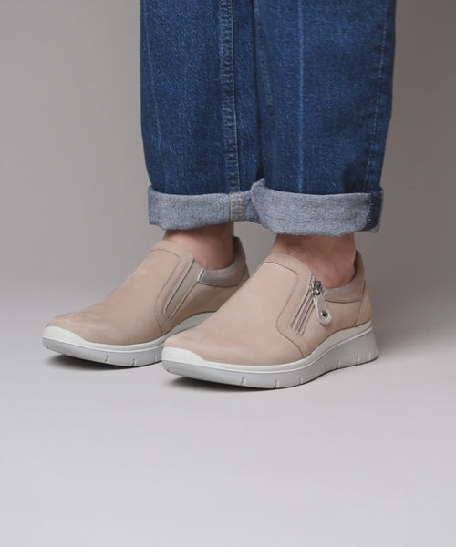Beige slide on zipped trainer shoe