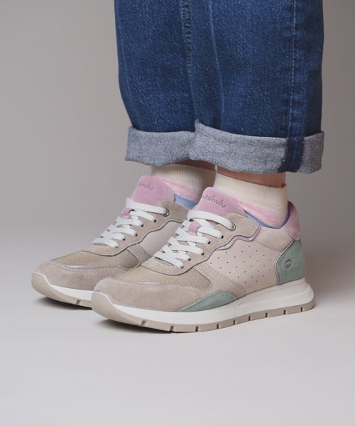 Neutral Women's colourful mesh panel platform trainers