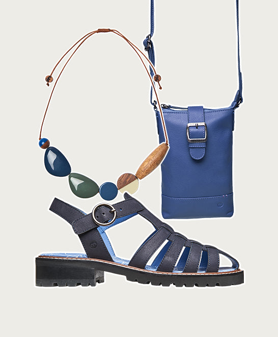 Blue leather strappy fisherman sandals