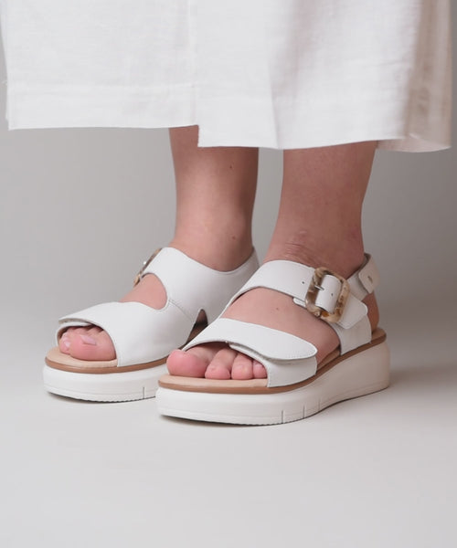White Women's platform sandals with three Straps and marble buckle