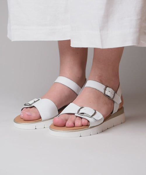 White Philly adjustable strap sandal with flexible soles