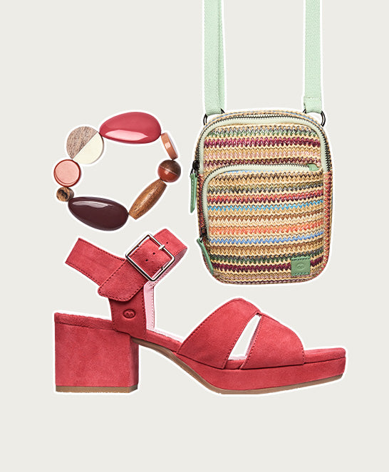 • Block platform heel for an elevated style with comfort.