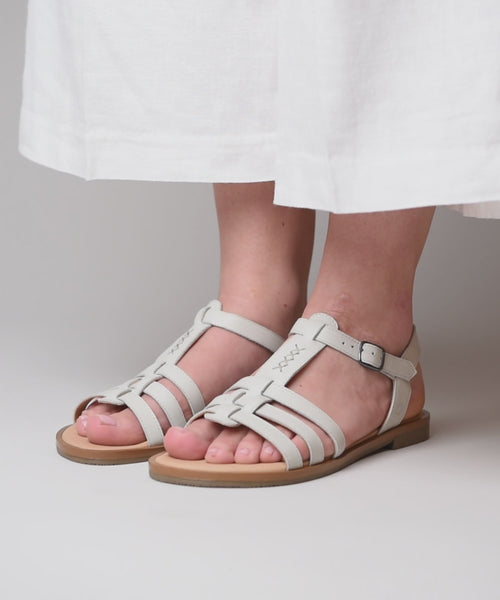 White Nubuck or leather strappy sandals with buckle ankle strap