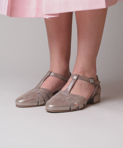 Metallic almond-toe vintage style shoes