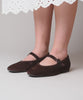 Brown Square toe ballerina pump with adjustable buckle