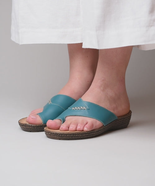 Blue toe-loop comfort sandals