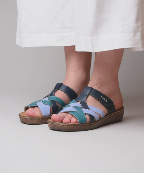 Blue Women's slip on multi-coloured woven leather sandals